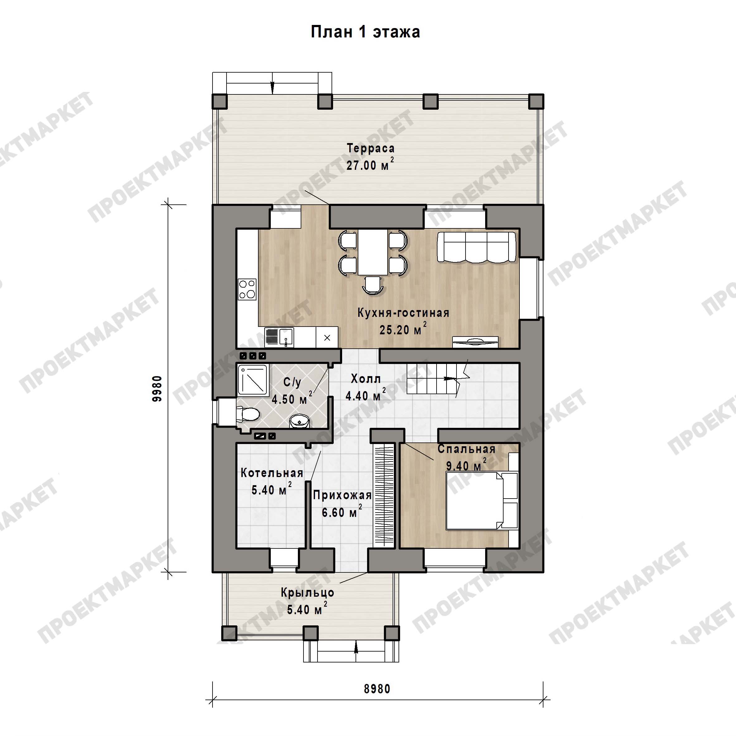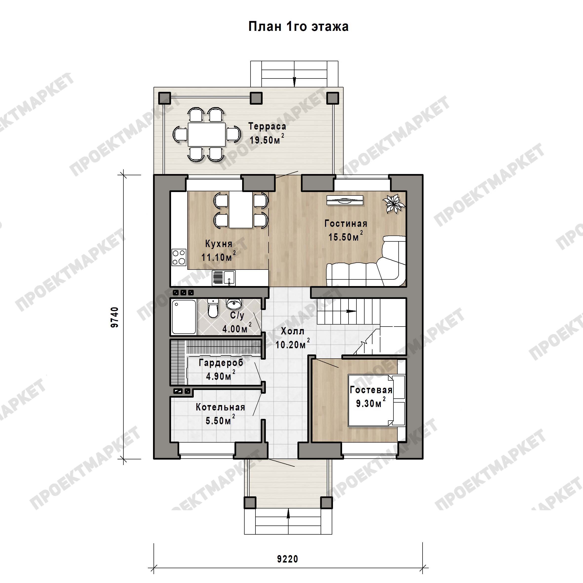 Продуманный проект дома придает ему в итоге оригинальность. Например, просторная и красивая терраса служит местом для приемов, демонстрируя уют вашего жилища. При проектировании разработчики применили весь свой архитектурно-строительный опыт, чтобы ваш загородный дом прослужил долго.