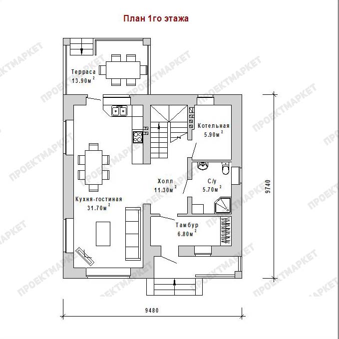 Стены:кирпич